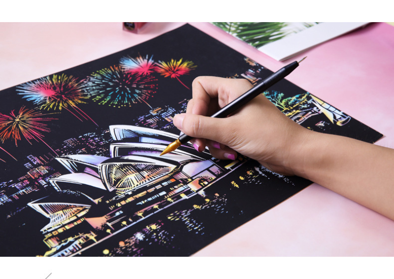 Sydney scratch art həm yaradıcı fəaliyyət, həm də dekorativ istifadə üçün ideal seçimdir. Bu məhsul Sidney temalı scratch art, Opera House rəsm dəsti, neon scratch paper, DIY sənət fəaliyyəti və kreativ hədiyyə axtaranlar üçün mükəmməldir. Öz sənət əsərinizi yaradın və Sidneyin enerjili gecə atmosferini evinizə gətirin. ✨🎆🎭🎨