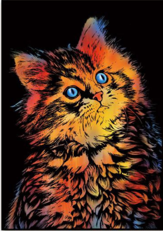 Cat Scratch Art – zəriflik və sevimliliyin simvolu olan pişik obrazını canlı və təsirli şəkildə əks etdirən premium scratch art məhsuludur. Bu dizaynda pişiyin detallı portreti qara səthin altında gizlənir və qaşıdıqca parlaq, isti tonlar və rəngarəng effektlərlə canlanaraq realistik görüntü yaradır.
