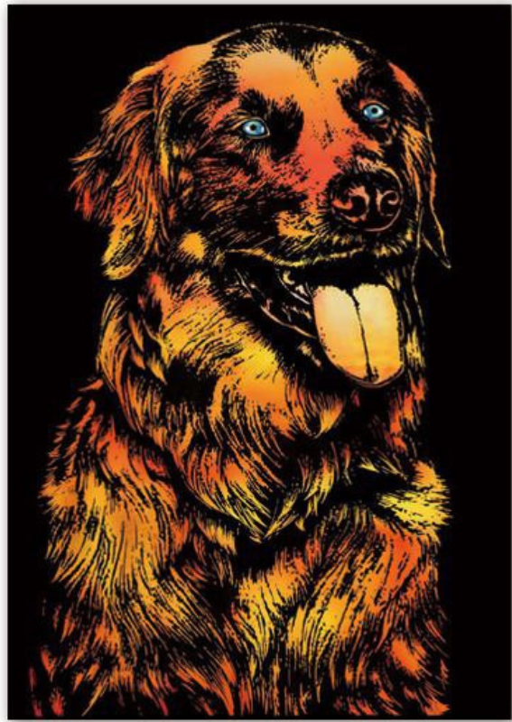 Dog Scratch Art – sadiqliyin və dostluğun simvolu olan it obrazını canlı və təsirli şəkildə əks etdirən premium scratch art məhsuludur. Bu dizaynda itin detallı portreti qara səthin altında gizlənir və qaşıdıqca parlaq, isti tonlar və rəngarəng effektlərlə canlanaraq realistik görüntü yaradır.